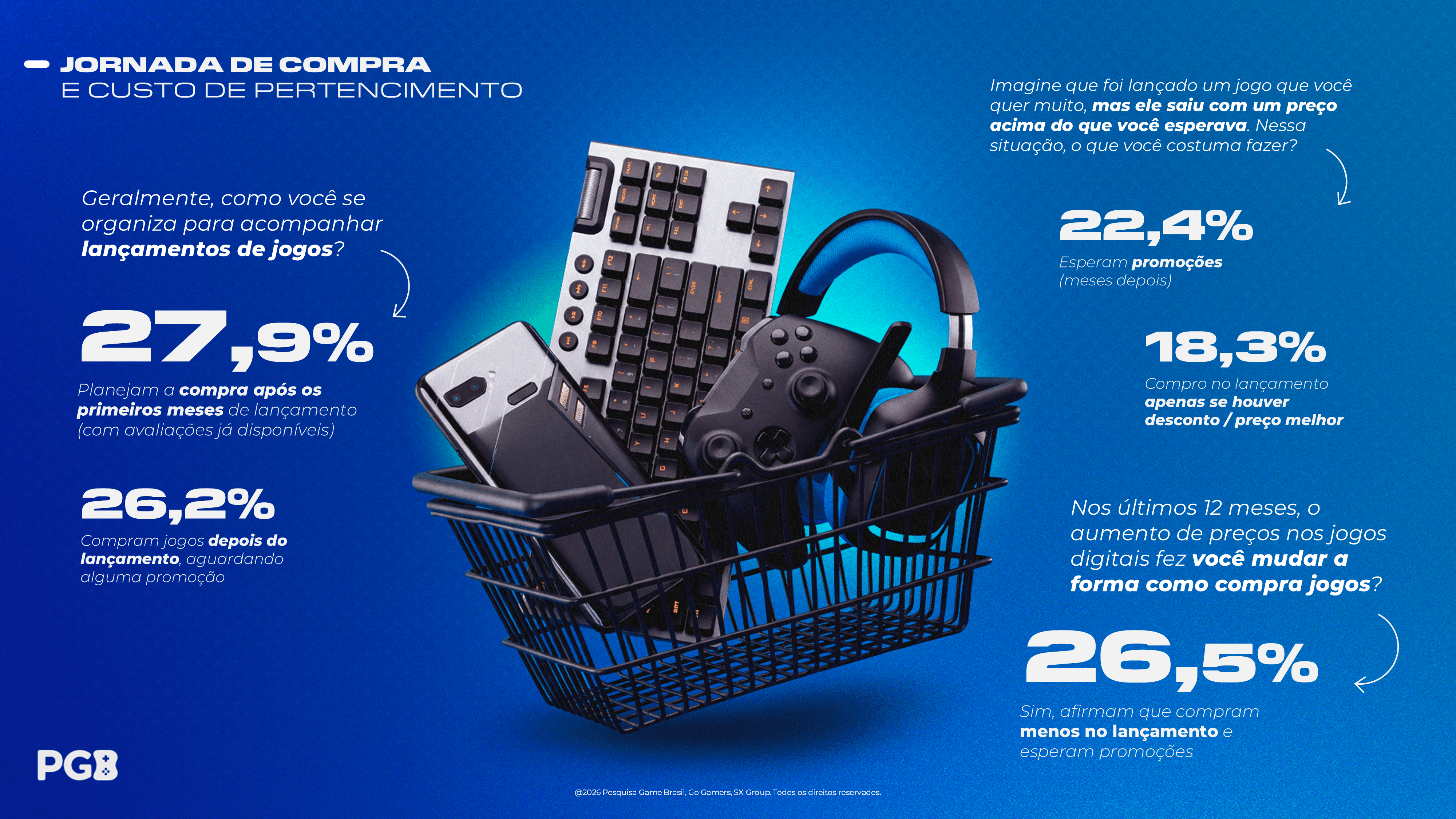 O comportamento do consumidor muda com o tempo, e isso não seria diferente com o mercado de jogos digitais. Quem é o jogador brasileiro? O que faz, o que quer, do que gosta? É isso que o relatório anual gratuito da PGB procura responder. Todos os anos, ouvimos diferentes perfis de consumidores de jogos para mapeá-los à fundo e conhecê-los como ninguém.